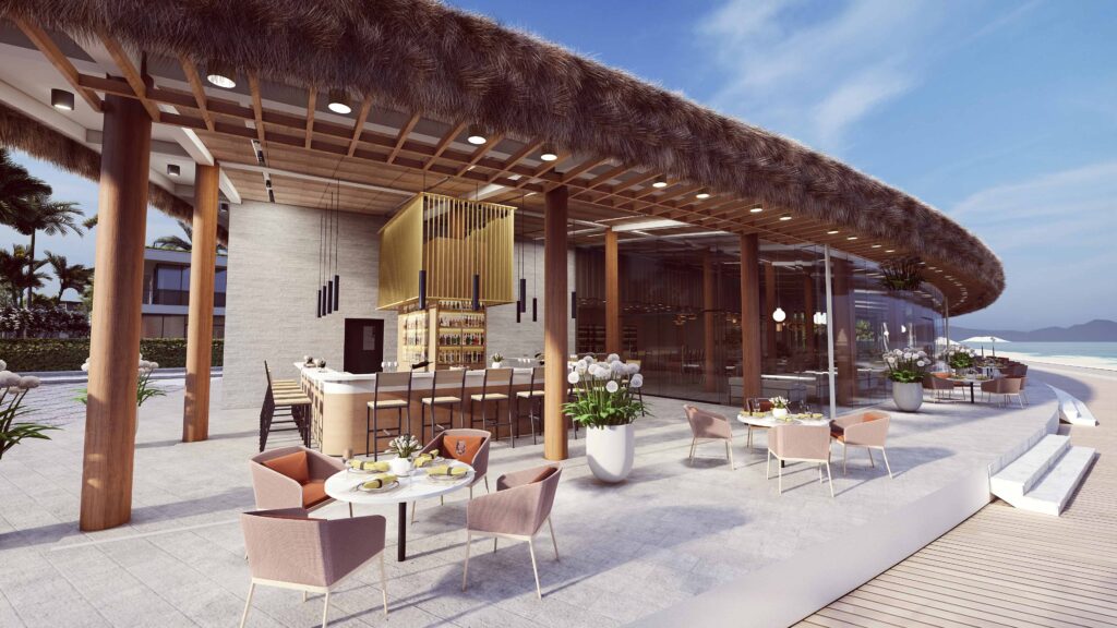 Le bar-lounge-restaurant Beachclub côté Droite – The Maris Vung Tau