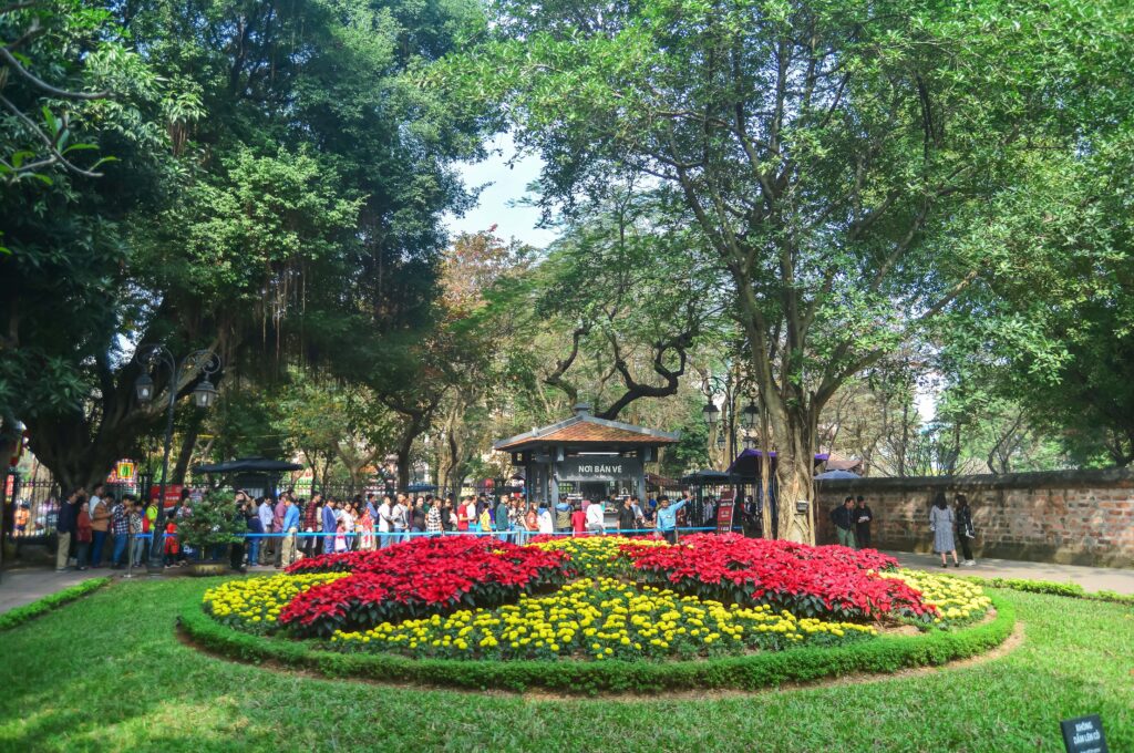 Văn Miếu – Quốc Tử Giám, également appelé Temple de la Littérature, est sans conteste le site touristique le plus emblématique de Hanoï. Il est réputé pour son riche héritage historique et culturel, ainsi qu’à son cadre enchanteur, marqué par une forêt d’arbres centenaires. Chaque année, à l’occasion du Têt (Nouvel An vietnamien), des milliers de visiteurs s’y rendent pour un pèlerinage mêlant promenade, expositions et offrandes afin de solliciter la chance pour l’année à venir.